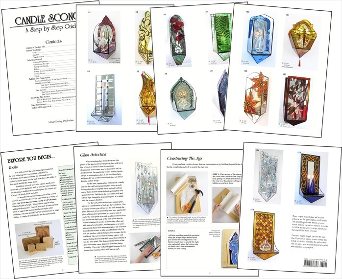 This book is 68 pages in all including the tear out center section that contains the full size pattern templates. There are 16 original candle sconce patterns for all skill levels. The full color instructions are easy to follow and simplify the whole process so even a novice glass crafter can make a sconce! There is no fancy hardware to buy and any style of candle can be used. Imagine what a beautiful warm ambiance a sconce will add to your space. They make fabulous gifts too!